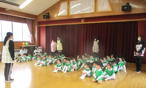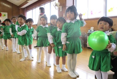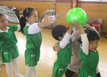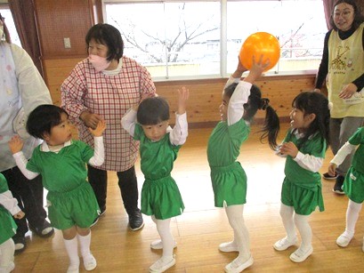 小さなクラスも大きなクラスもみんなでボールやバトンを渡しあい、