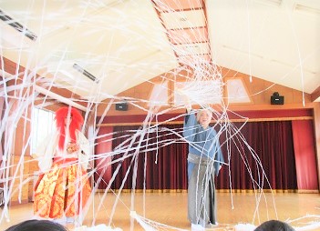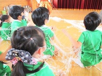 能が終わり、お話しよりも蜘蛛の糸に興味津々だった子供たちに、