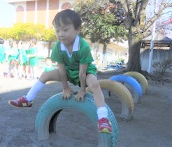持ち帰りました体操着はご家庭で保管し、三学期に園にお持ちください。