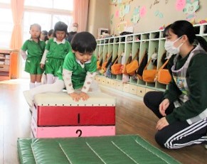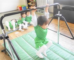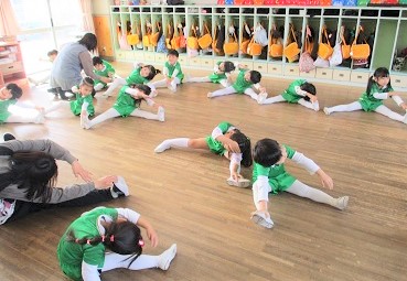 遊戯室での体操後は各クラスに分かれてスポーツクラブを楽しみました。