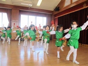 雪組さんは運動会の時に鳴子を持って踊った「鼓舞太鼓」