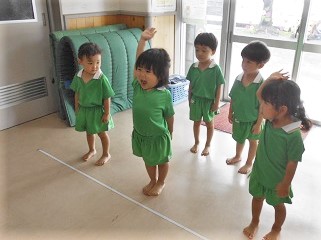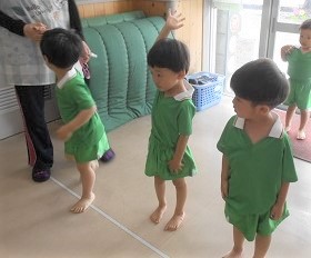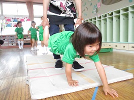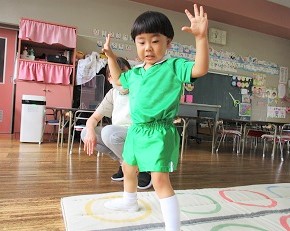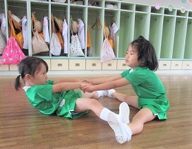 遊戯室で体操をした後に各クラス分かれてスポーツクラブを楽しみました。