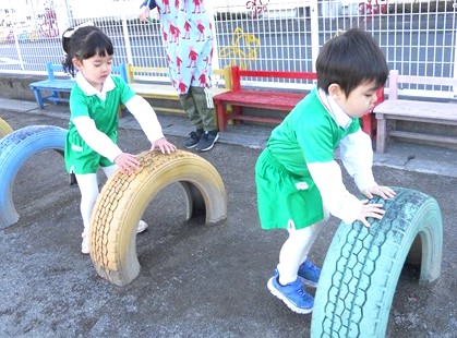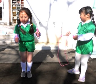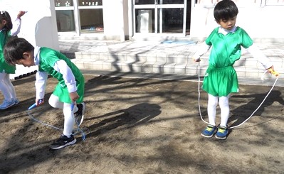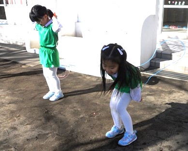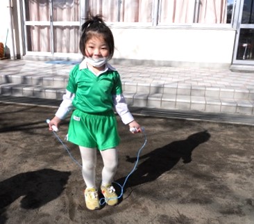 サーキットをした後、小さなお庭で縄跳びを頑張りました。