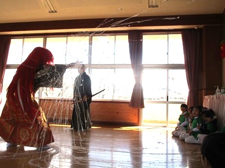 ・・・緞帳の向こうから、『人食い蜘蛛の鬼』が現れました!!