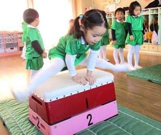 そして2段の飛び箱にチャレンジしました。