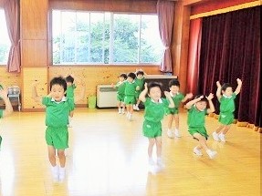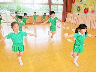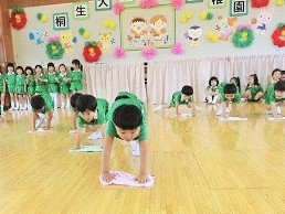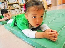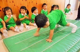 つぼみ組さんはどんぐりコロコロとクマさん歩きの練習です。