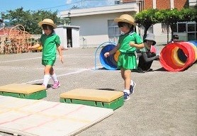今日は、徒競走や障害物の基礎練習をみんなで楽しく行いました。