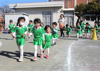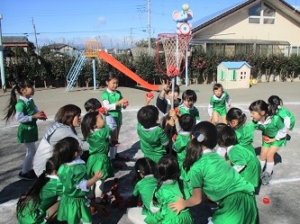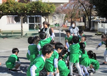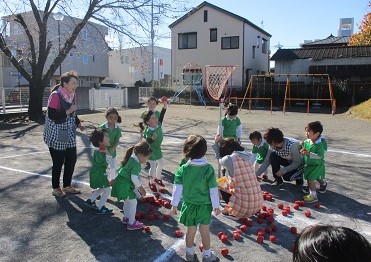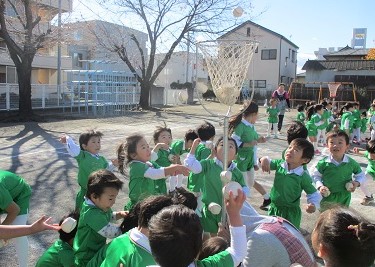 その後、つぼみ組さん VS 花組さんで、玉入れです。