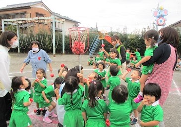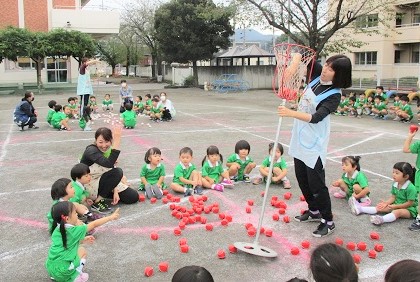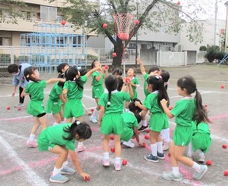 今日のスポーツクラブはみんなで「玉入れ」をしました。