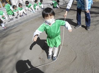 遊具を使ってサーキットと縄跳びを頑張りました!