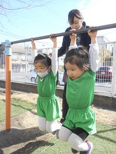 縄跳び、鉄棒、ボール遊びを頑張りました!