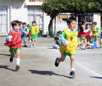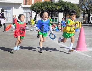 リレーをして園庭を全力で走りました!!