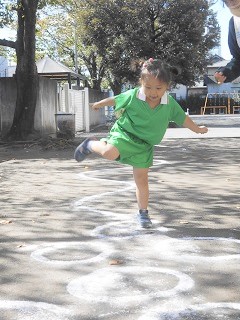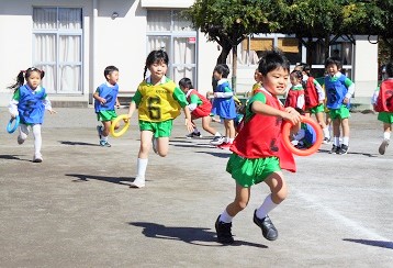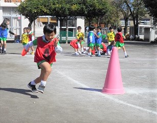 秋晴れの中、楽しく体を動かしました。