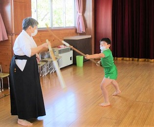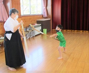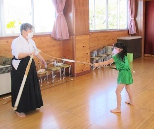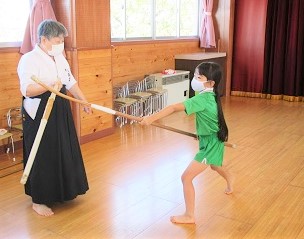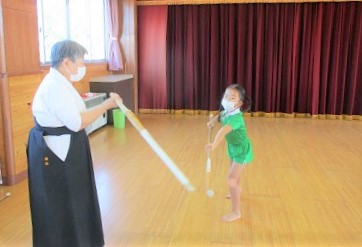 今日の薙刀は打突棒を使って「面打ち」の練習をしました。