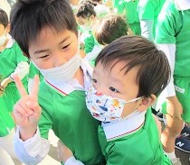 大きなクラスのお友達は、小さなクラスを誘導する責任感と、