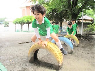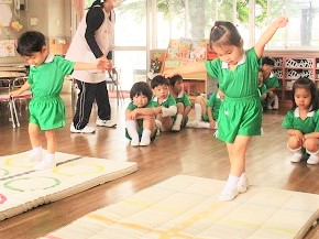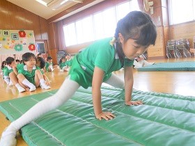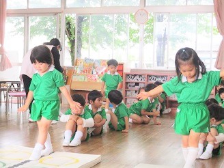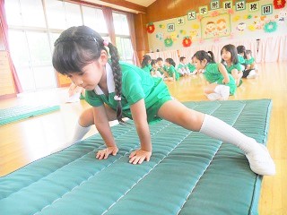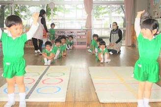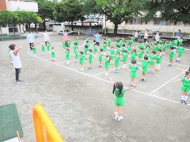 今日は久しぶりに雨があがり、園庭で体操をする事ができました。