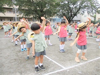 今日の体操は暑い中でも元気いっぱい、笑顔いっぱいに踊ってくれました。