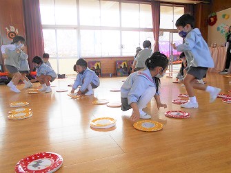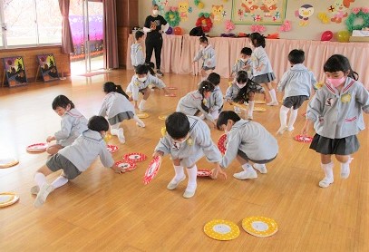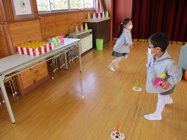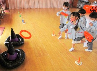 雪組さん、月組さんはお遊戯室でハロウィンゲームを楽しみました。