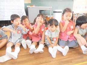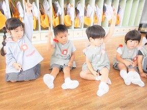 小さなクラスの友達との触れ合いで、花組さんはお兄さんお姉さん気分。