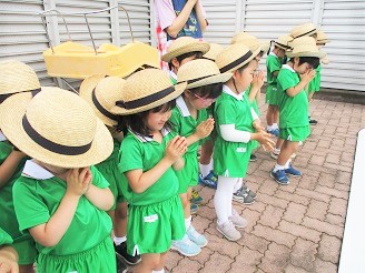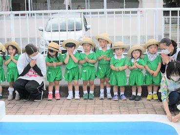 子ども達みんなでお祈りした後、プールのお約束確認もしました。