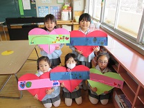 今日のレインボークラブは バレンタインカードを作り、