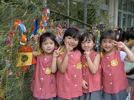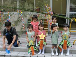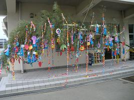 みんなで大きな竹に たなばたの飾りをつけましたよ~!!