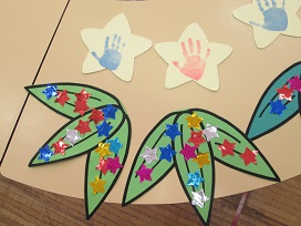 7月7日、お迎えに来られる方は是非 笹飾りを見に来てくださいね
