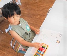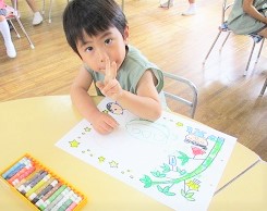 つぼみ組さん・はな組さんは今日、お絵かきをしました。