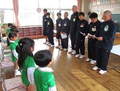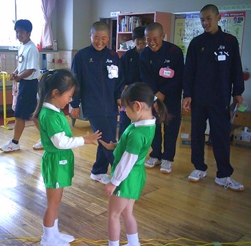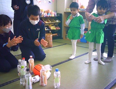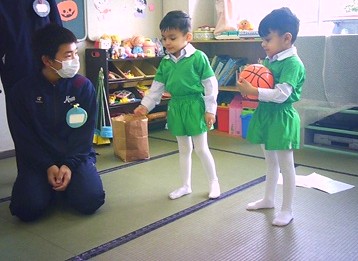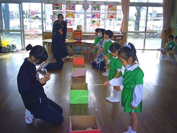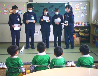 桐生大学附属中学校の生徒さんたちが、幼稚園に遊びに来てくれました。