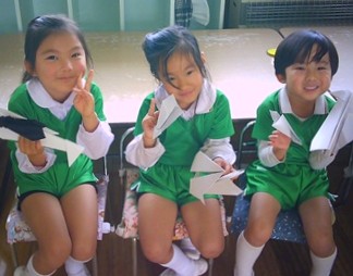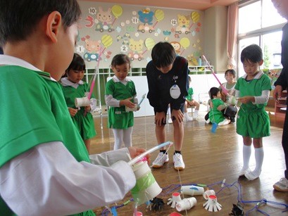 つき組さんは『へびじゃんけんと紙ひこうき飛ばし』の2ゲームを楽しみました。