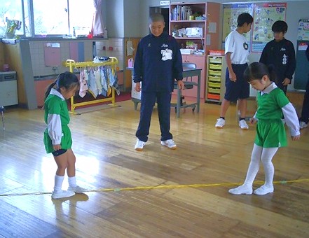 ゲームが終わった後は、みんなで園庭に出て戸外遊びです 。