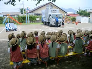 今日は 佐川急便の皆様にきていただき 園庭で全園児による