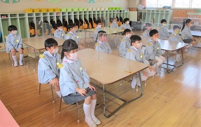 始業式は、感染防止対策のため各クラスで放送を聞き行いました。