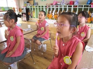 今日、年長月組さんで ≪虫歯予防教室≫ が行われました。
