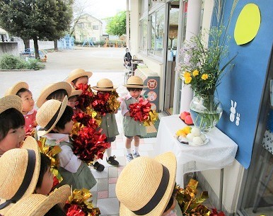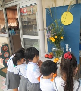 幼稚園では今日、十五夜飾りをしました。