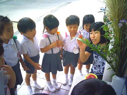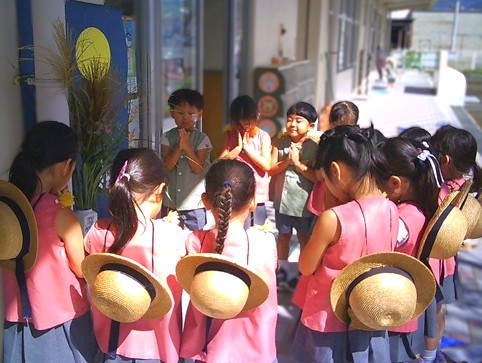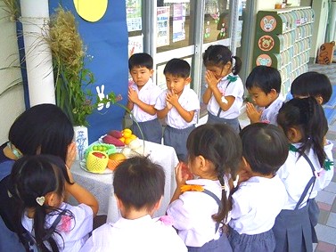 幼稚園では十五夜飾りをしました。