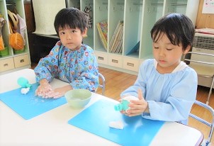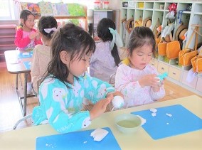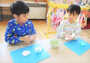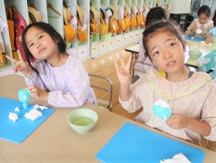 自分をイメージして作った紙粘土の指人形、完成が楽しみですね!!
