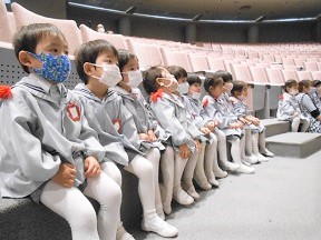 全クラスで大学へ移動しクリスマス会練習を行いました。