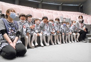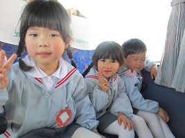 大型バスに乗ったつぼみ組さん、はな組さん、