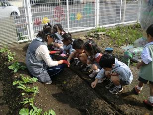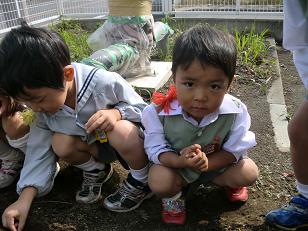 2歳児クラスのお友達も 大根の種蒔きに参加したかったようです♪