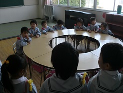 各クラスのお友達から 返事をいただき、対面式は終了しました。