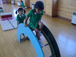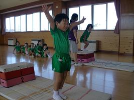 運動会の障害物競走にむけて 跳び箱とたいこばしの練習をしました。
