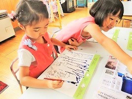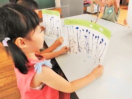 小雨の子も、大嵐の子もいる、 この時期ならではの 絵の具遊びでした(^^)