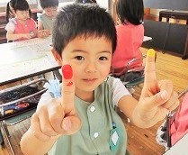 初めての絵の具遊びは 楽しさいっぱい、洋服汚れいっぱい・・・(^^;)