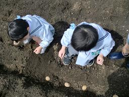 ゆきぐみさんが、畑にじゃがいもの植え付けをしてくれました。