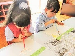 『髪の毛みたい!』 と様々なイメージが溢れてくる絵の具遊びでした。