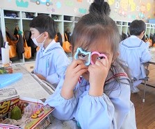 今回の雪組さんの絵の具遊びは「スタンプ」です。