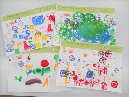 ご家庭からスタンプになりそうな物を選んで、持ってきていただきました。