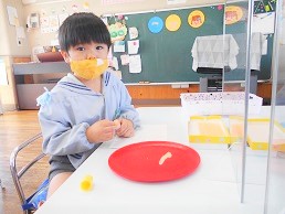 色とりどりのお盆に自分の顔をちぎり絵で作っていきます!