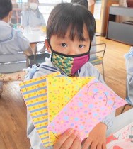 今日のきりがみあそびの題名は ≪おしゃれめがね≫です!